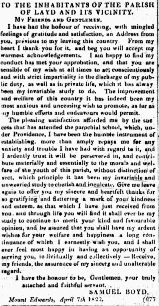 - Belfast Commercial Chronicle – 8 May 1822 ↩︎