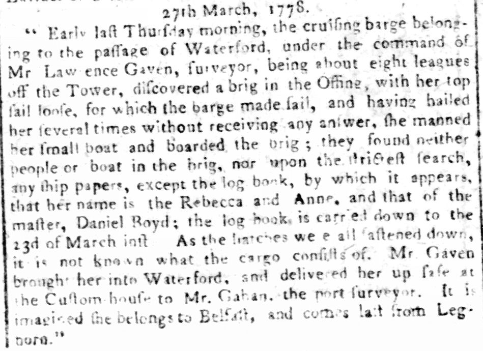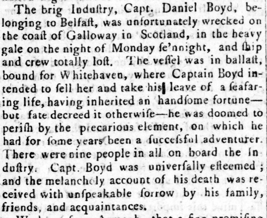 - Belfast News letter – 21/24 November 1794 ↩︎
