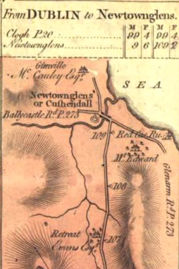 - May 1687 – Various lands in the Parish of Layde (almost certainly including that which would became Mount Edwards) leased for a term of 500 years at an annual rent of £5 by Alexander MacDonnell, 3rd Earl of Antrim to Daniel MacDonnell, illegitimate son.16